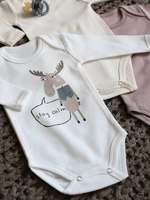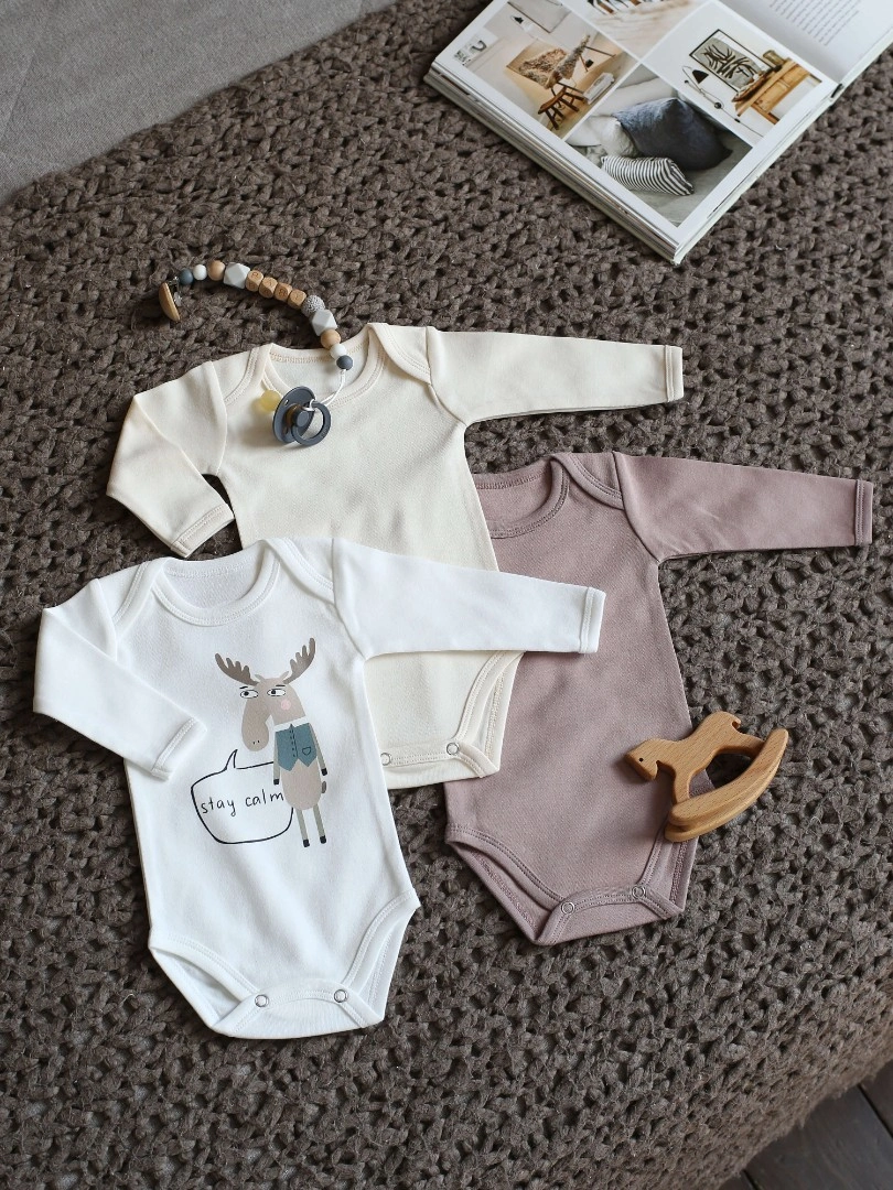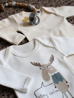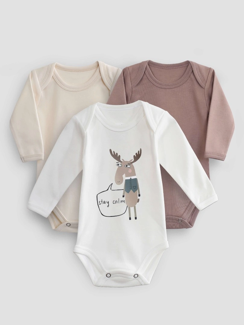 Набор из трёх боди с длинным рукавом — идеальный выбор для комфортных и стильных будней малыша. Главный акцент на молочном боди с очаровательным принтом: умиротворенный Лось в скандинавском стиле и мотивирующая надпись "Сохраняй Спокойствие" добавляют вдохновения и уютной атмосферы в каждый день. В комплект также входят два однотонных боди в универсальных цветах – Сливки и Какао. Мягкая ткань приятна к коже, а удобные кнопки позволяют легко сменить одежду.