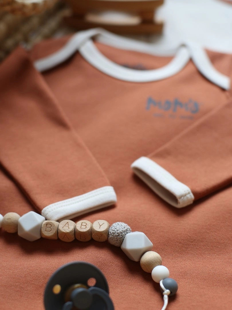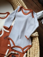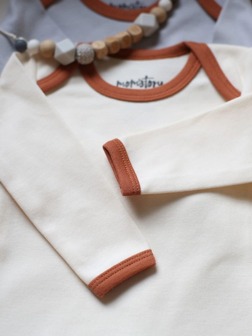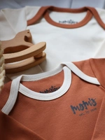 Этот набор из трёх боди в Ретро-стиле — возвращение к стилю, который был близок нам в детстве, но в современном и обновлённом прочтении. Каждое боди выполнено в природных сочетающихся оттенках с контрастным кантом, который придаёт особую изысканность. На груди одного из боди — принт "Mom'S. Est. by Mom.". Это не просто надпись, а трогательная игра слов: "Мамин. Сделано мамой". Ведь малыш, который носит это боди — мамин, создан своей мамой, и каждая деталь одежды тоже создана мамами с любовью именно для него. Этот набор — это не просто одежда, а ностальгия по нашим детским годам и современный взгляд на стиль, который дарит уют и тепло.