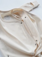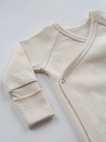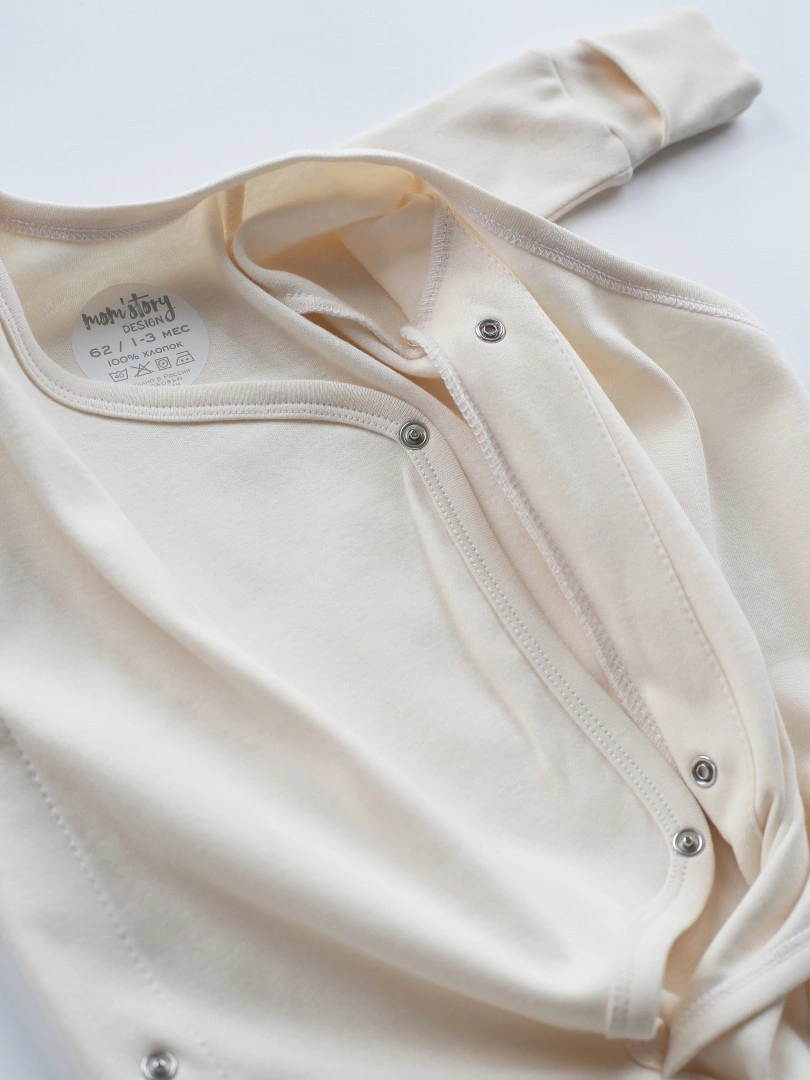 Слип на кнопках Мам, РастемВместе – создан с учетом всех потребностей мам и пап, чтобы процесс переодевания был максимально удобным и быстрым. Этот нательный комбинезон легко застегивается и расстегивается благодаря минимальному, но оптимальному количеству кнопок, что позволяет переодеть малыша без лишних усилий и задержек. Манжеты на рукавах и ножках слипа могут легко превращаться в варежки и носочки. Вы можете носить слип с открытыми ручками и ножками или с закрытыми – как вам удобнее! Если комбинезон немного велик, манжеты можно подвернуть для лучшей посадки. Натуральный материал обеспечивает мягкость и комфорт и идеален для чувствительной кожи новорожденного.