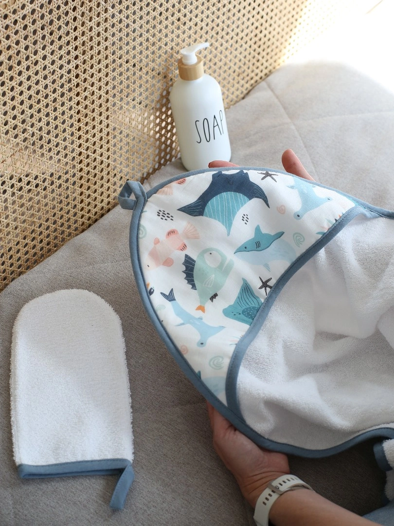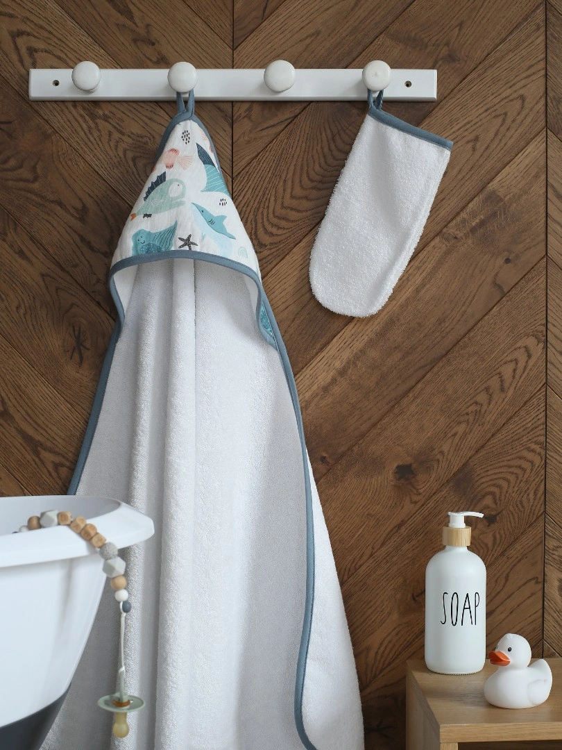 В комплект также входит варежка, которую можно использовать как мочалку, что делает процесс купания еще более удобным и приятным для малыша. Это полотенце — идеальный выбор для тех, кто хочет, чтобы каждый момент после купания новорожденного ребенка был уютным и запоминающимся.