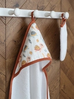 В комплект входит варежка, которую можно использовать как мочалку, что делает купание вашего малыша еще более комфортным и радостным. Это полотенце — идеальный выбор для купания новорожденного, которое поможет вам создать уютный и стильный ритуал ухода. Ваш малыш будет чувствовать себя не только уютно, но и стильно, благодаря нашему качественному и яркому полотенцу.