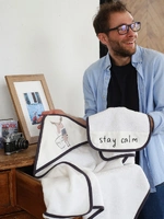 В комплект входит полотенце для лица с мотивирующей надписью "Будь спокоен". Второе полотенце в комплекте выполнено в том же стиле, что делает его идеальным дополнением — это не только практично, но и стильно.