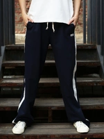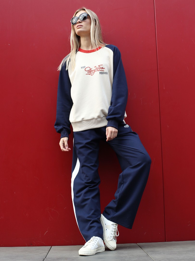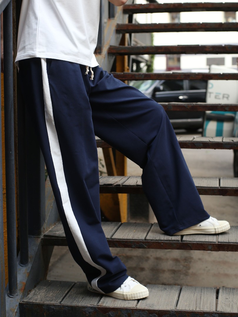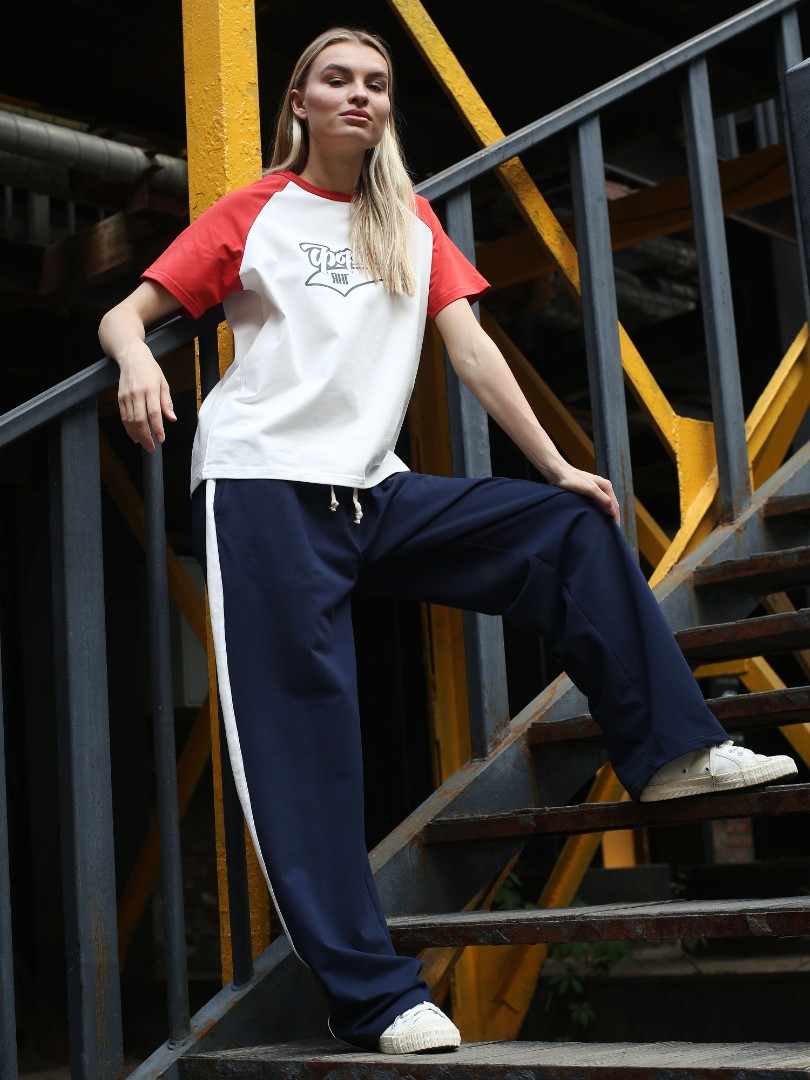Свободные прямые спортивные брюки с контрастными молочными лампасами — узнаваемый силуэт эпохи 90-х. Модель из мягкого двухниточного футера с регулируемым шнурком и увеличенной длиной для характерного напуска на обувь. В этих штанах есть всё, за что мы до сих пор любим ретро-спортивный стиль.