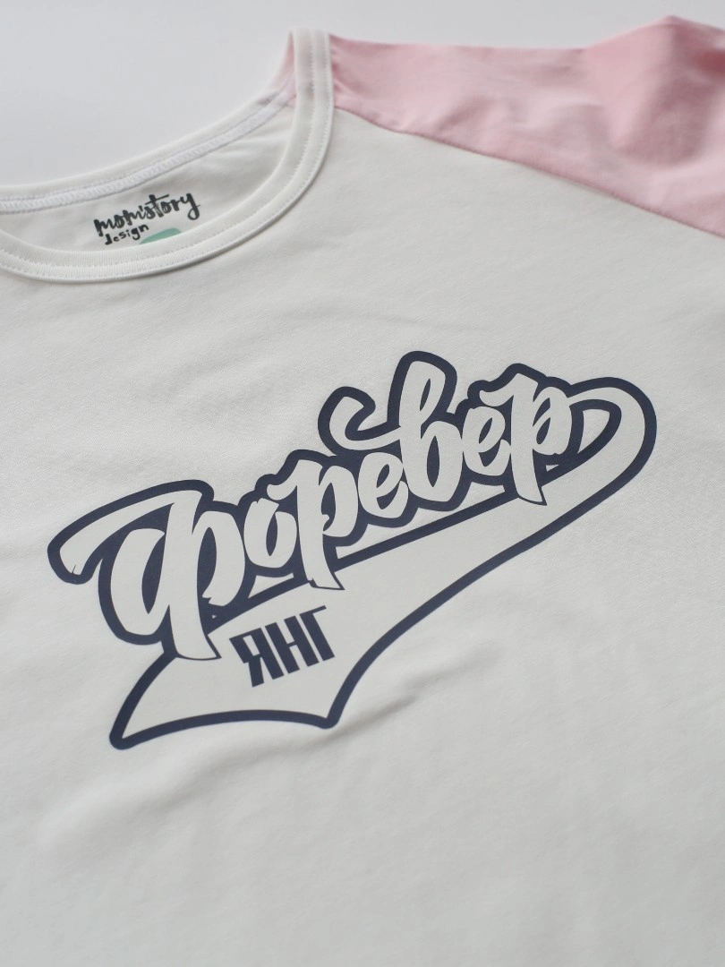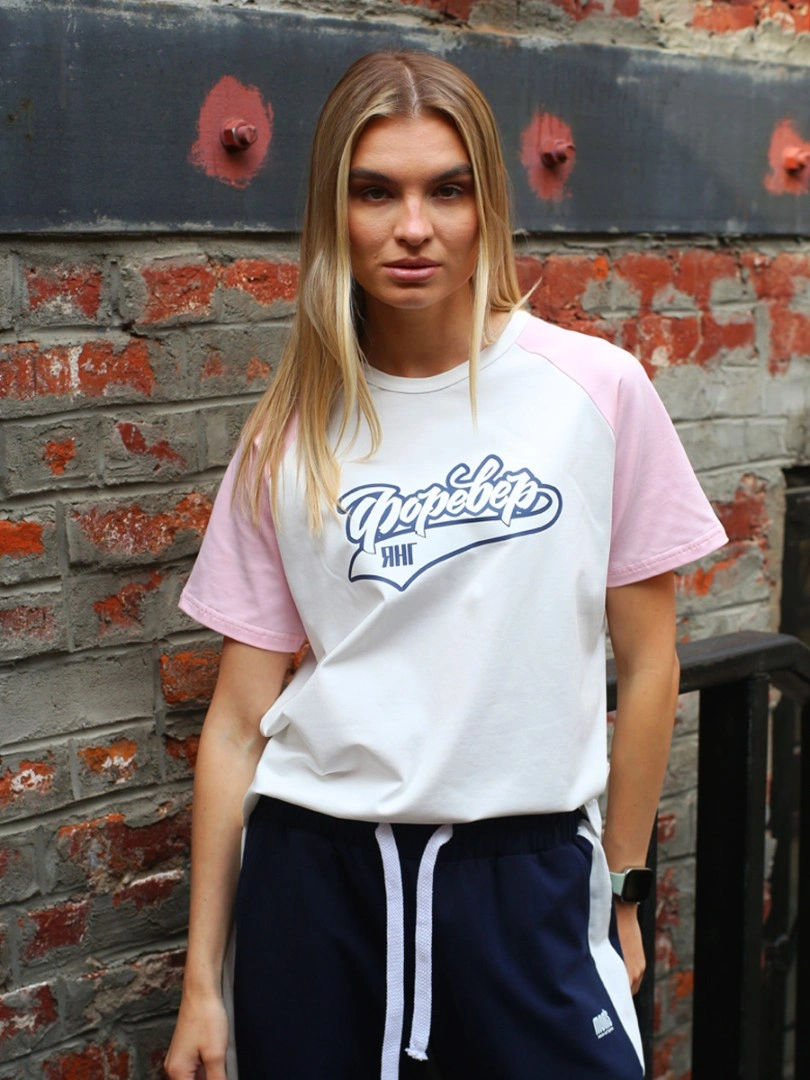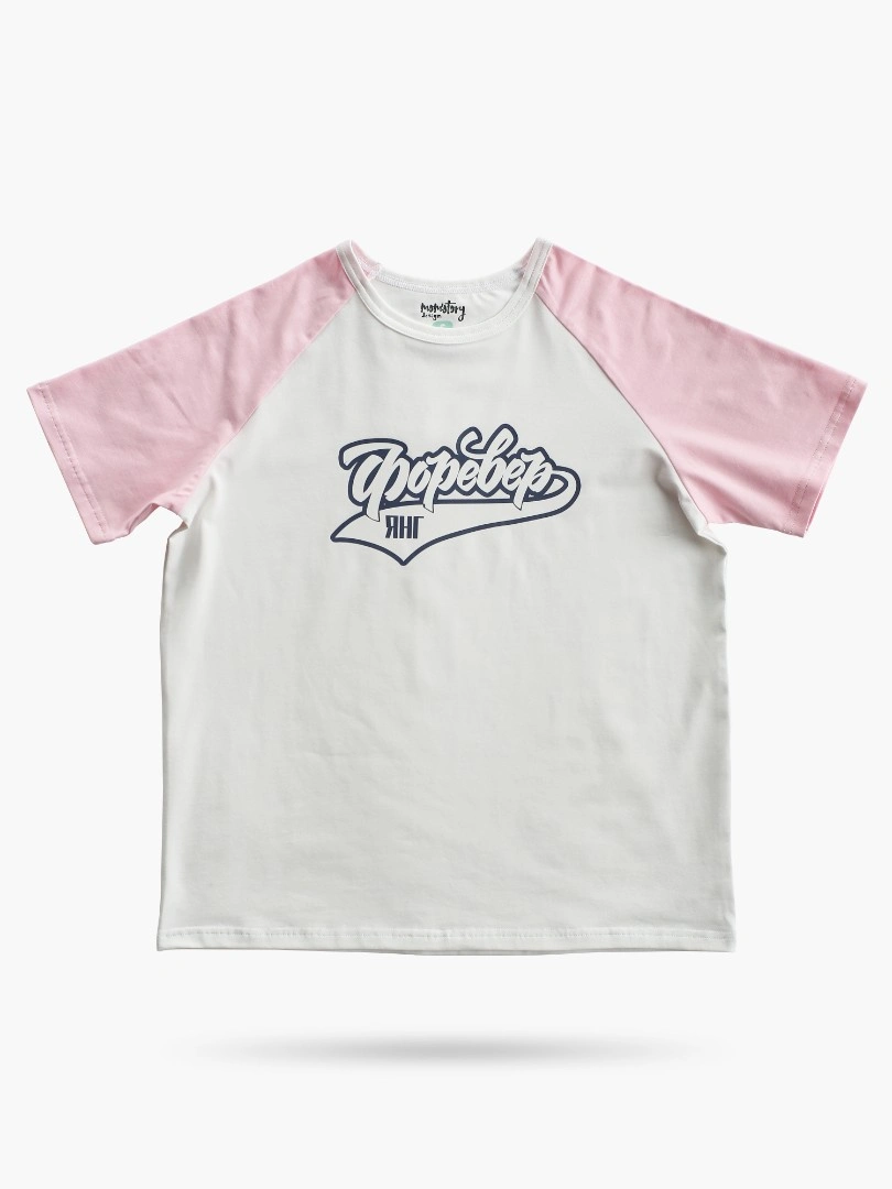 Принт, который говорит за вас: «Форевер янг» — так мы писали это заветное английское пожелание Forever Young в старые добрые времена. Для кого это: для всех, кто уверен, что настоящая молодость — это в первую очередь бунтарский дух и молодая душа, независимо от даты в паспорте. Контрастные рукава реглан — это 100% ретро. Такую конструкцию помнят еще с советских спортивных форм: удобно, не сковывает движений и сразу создает тот самый винтажный образ из 80-90-х.