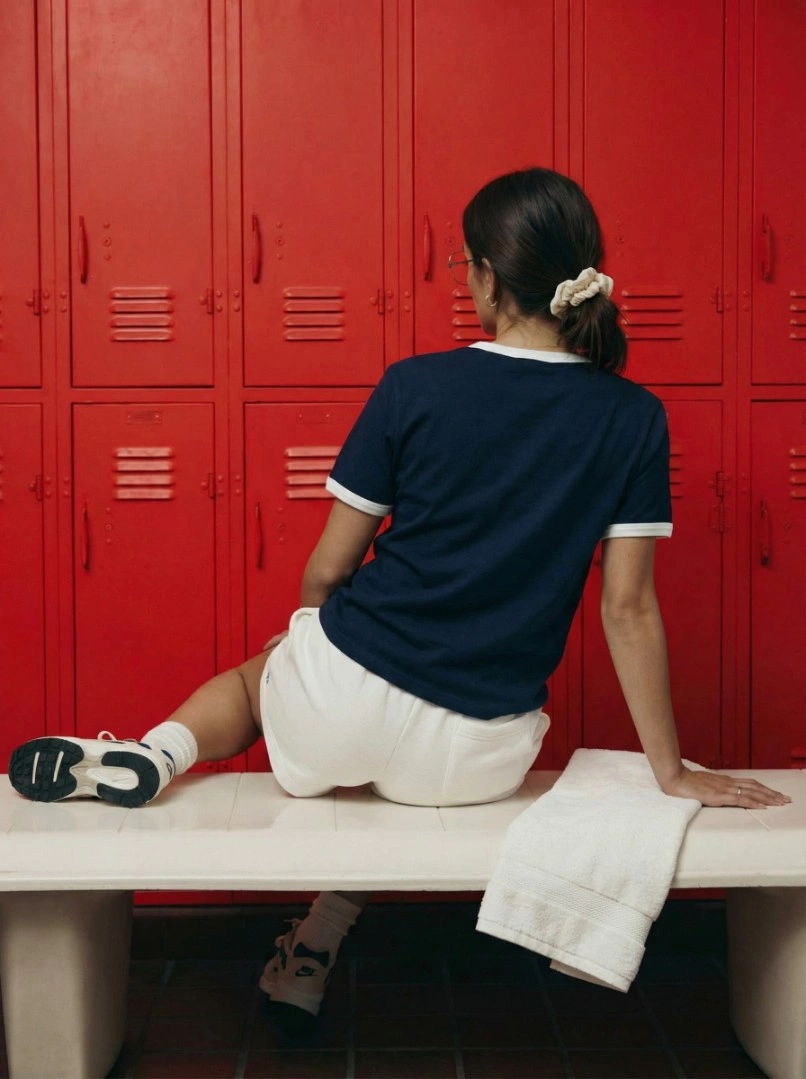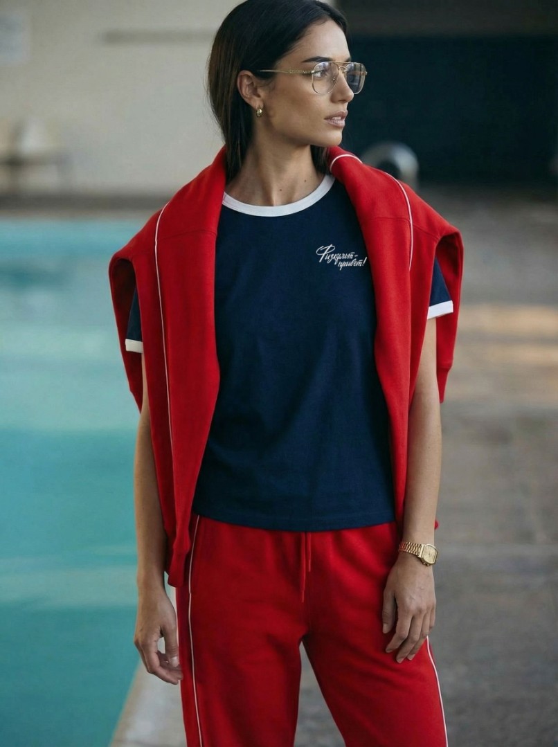 Носите с кедами, кроссовками или под легкую ветровку — для тех, кто держит себя в тонусе, эта футболка станет знакомым «физкульт-приветом» самой себе.
