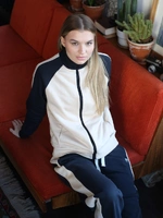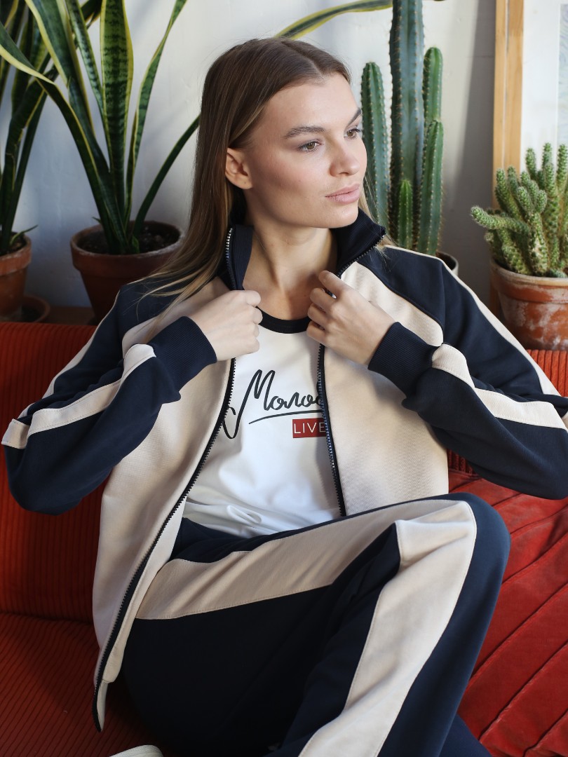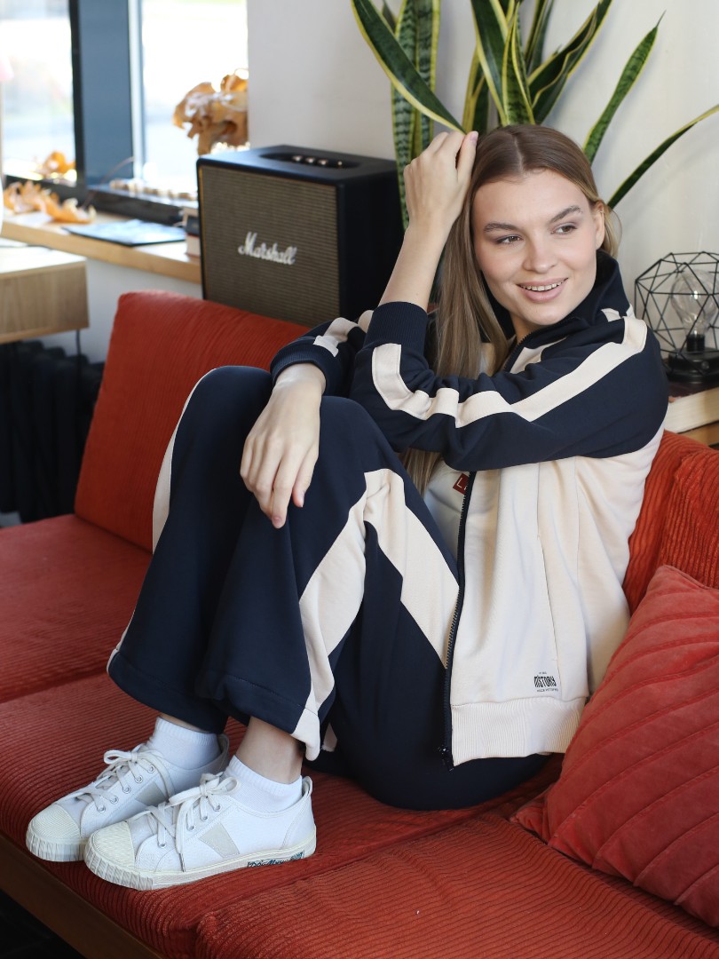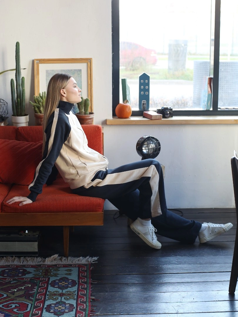 Олимпийка, которую узнают с первого взгляда. Прямой крой, контрастный рукав с лампасом и молния, объединяющая два цвета — это не просто дизайн, а нота из гимна советского спортивного стиля. Такие олимпийки носили не только атлеты, но и вся улица — от студентов до рок-музыкантов.
