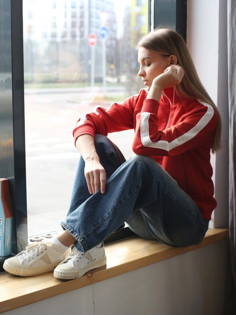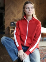 Олимпийка, которую узнают с первого взгляда. Прямой крой, контрастный лампас вдоль рукава и молния, разделяющая два цвета — это не просто дизайн, а нота из гимна советского спортивного стиля. Такие олимпийки носили не только атлеты, но и вся улица — от студентов до рок-музыкантов.